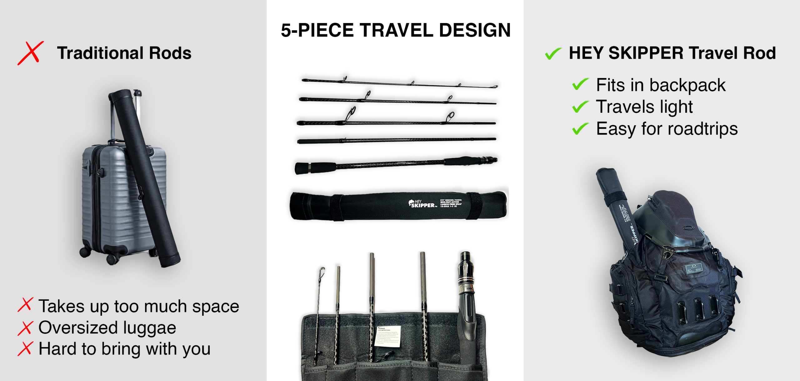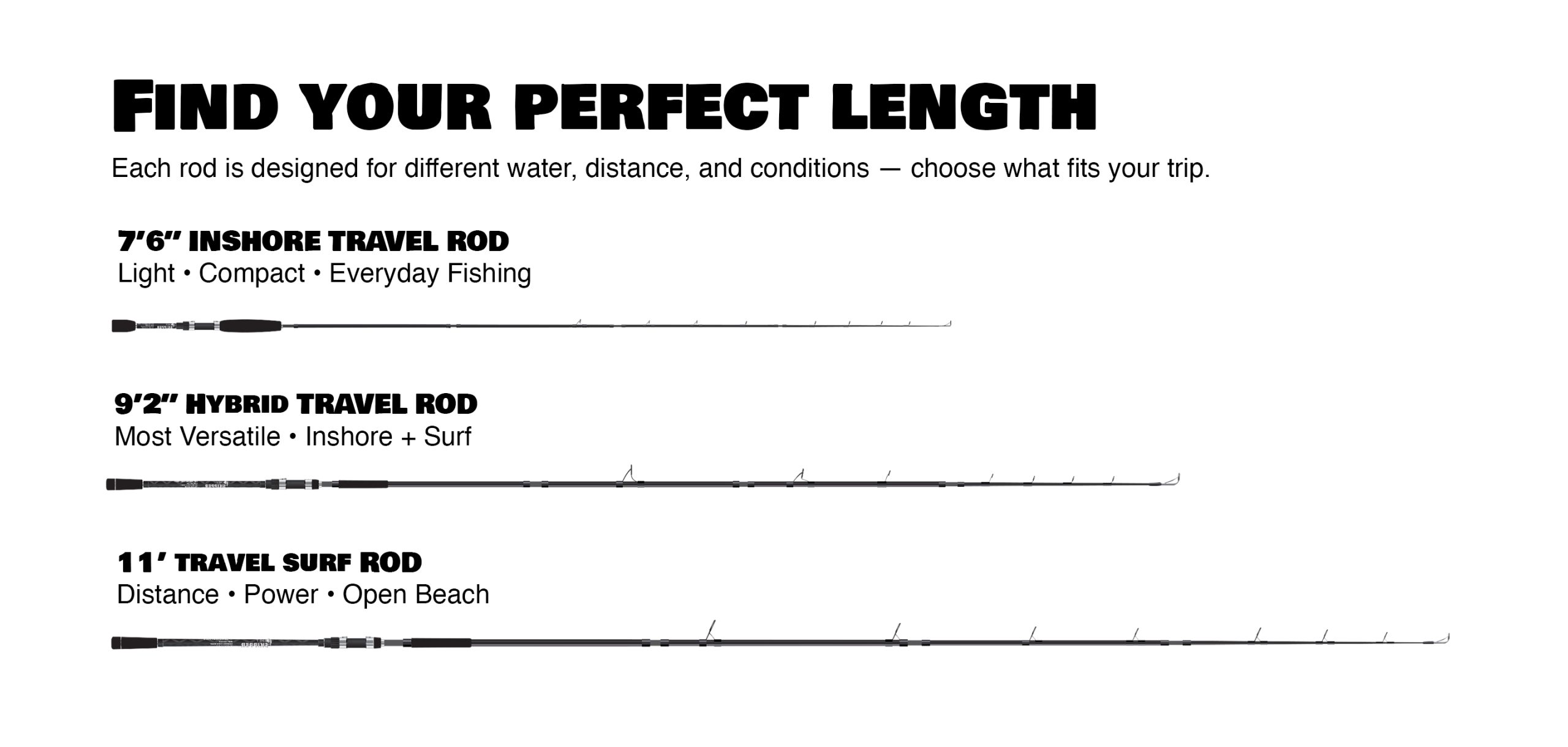 Short casts letting you down? Over-specialized rods too stiff? Travel hassles with bulky gear? We fixed that.