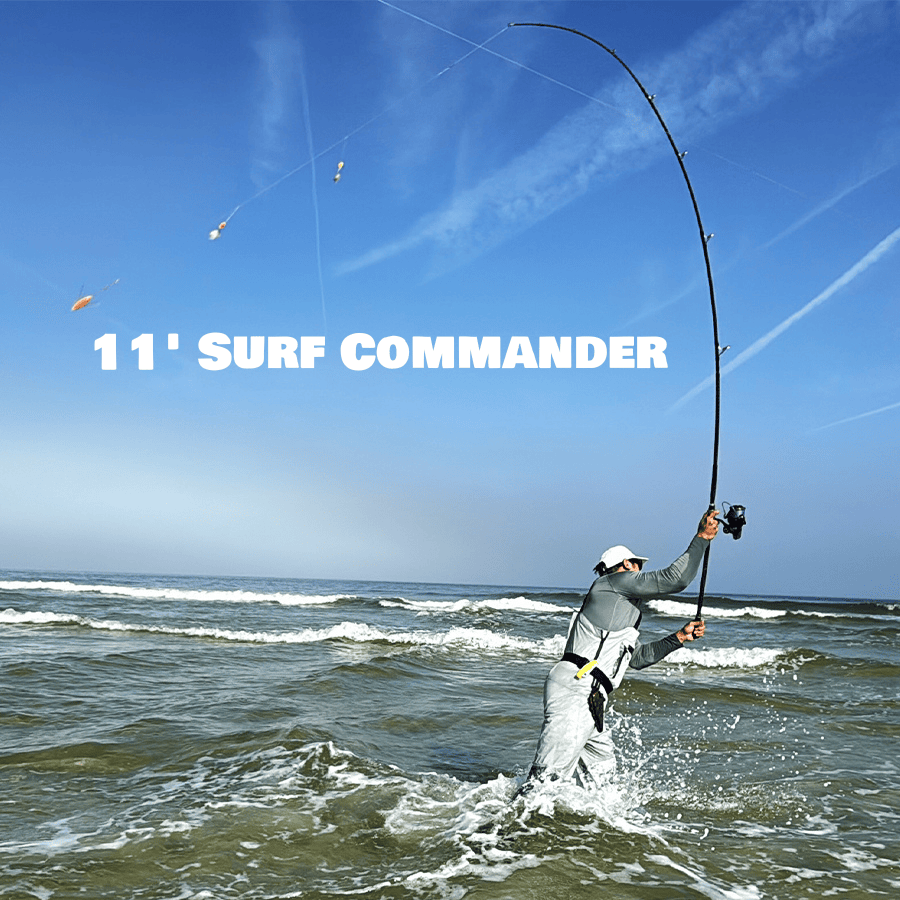 The 11′ Surf Commander is built to launch baits far beyond the breakers, with the length and power to reach fish that sit well past ordinary casting range.